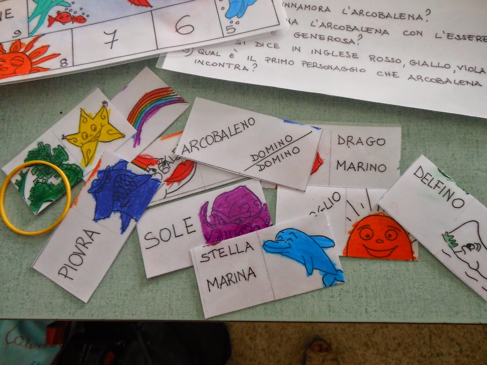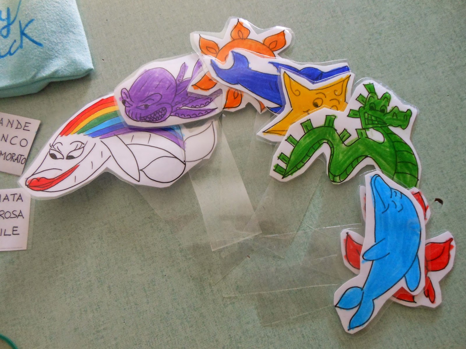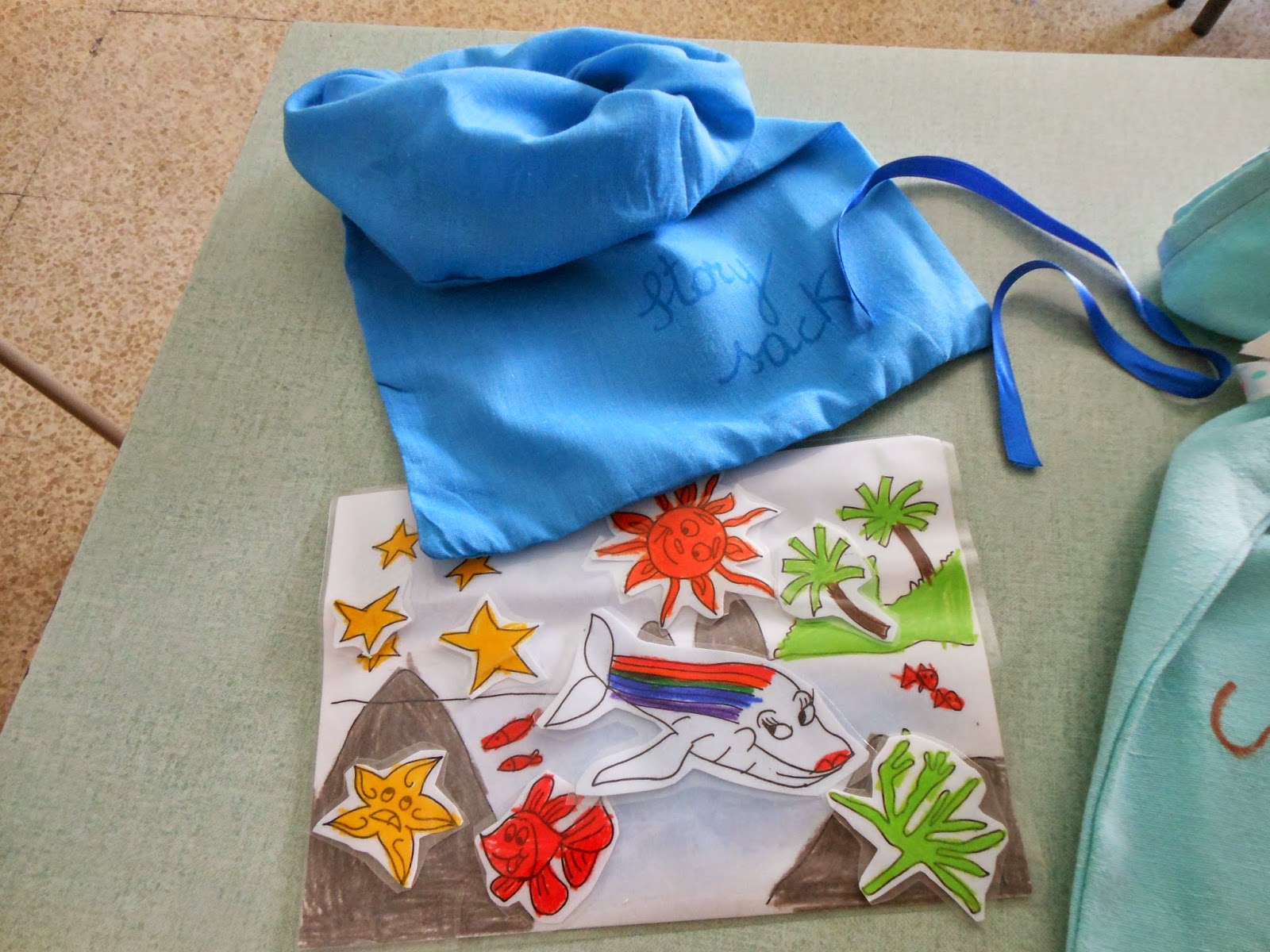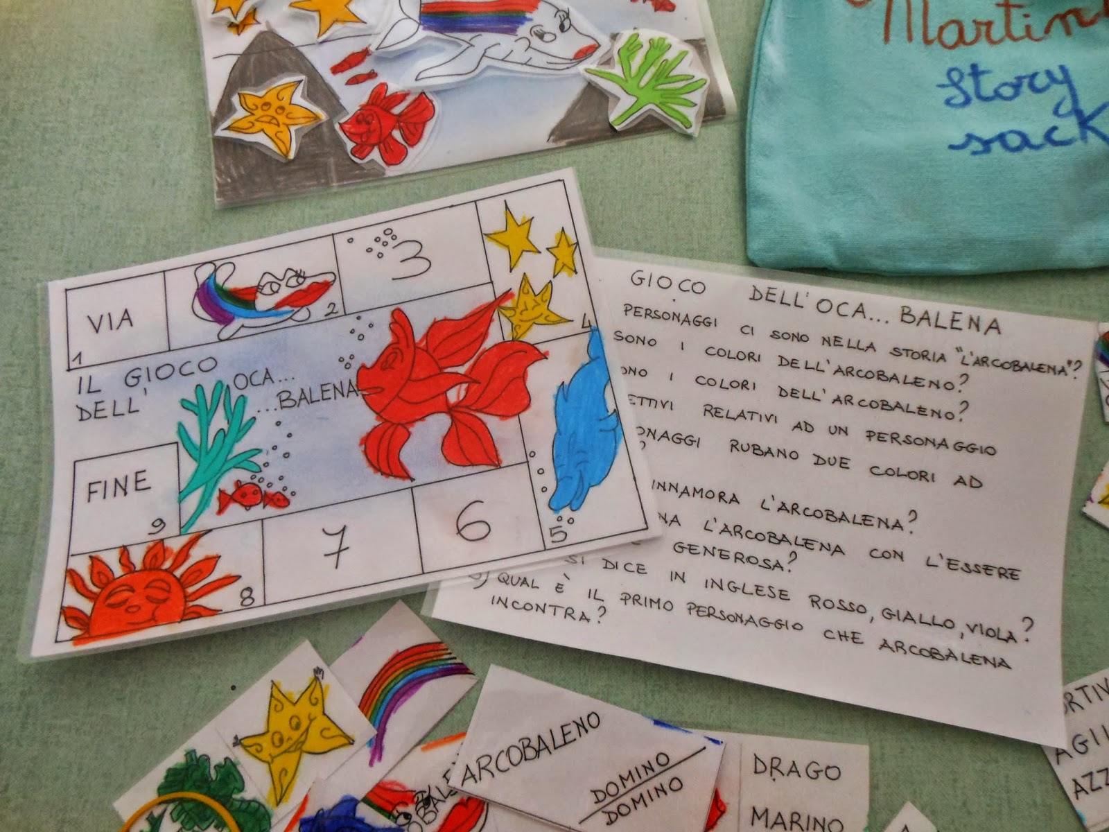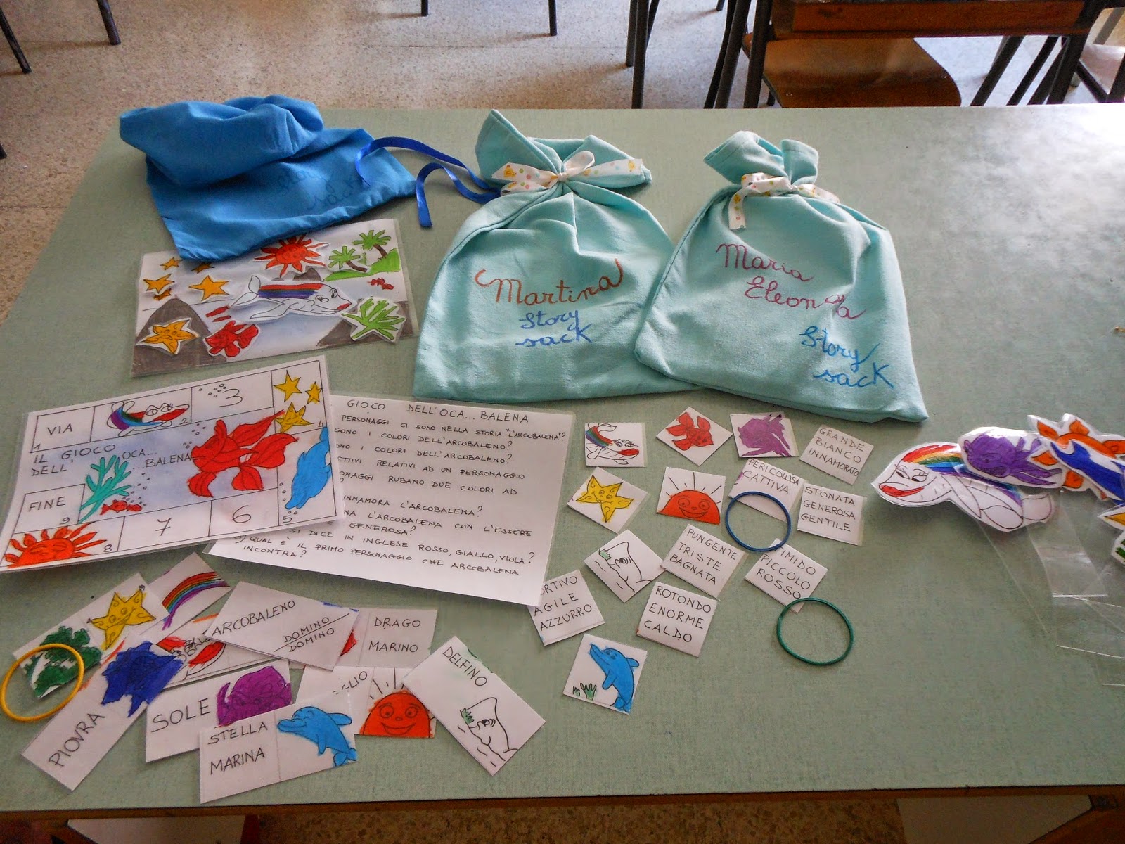 Ed ecco cosa ho creato per i miei alunni: un sacchetto contenente tanti giochi sulla loro storia dell'anno....memory game, domino, gioco dell'oca balena, personaggi puppets, stick stack, sequenze da riordinare. Che bello!